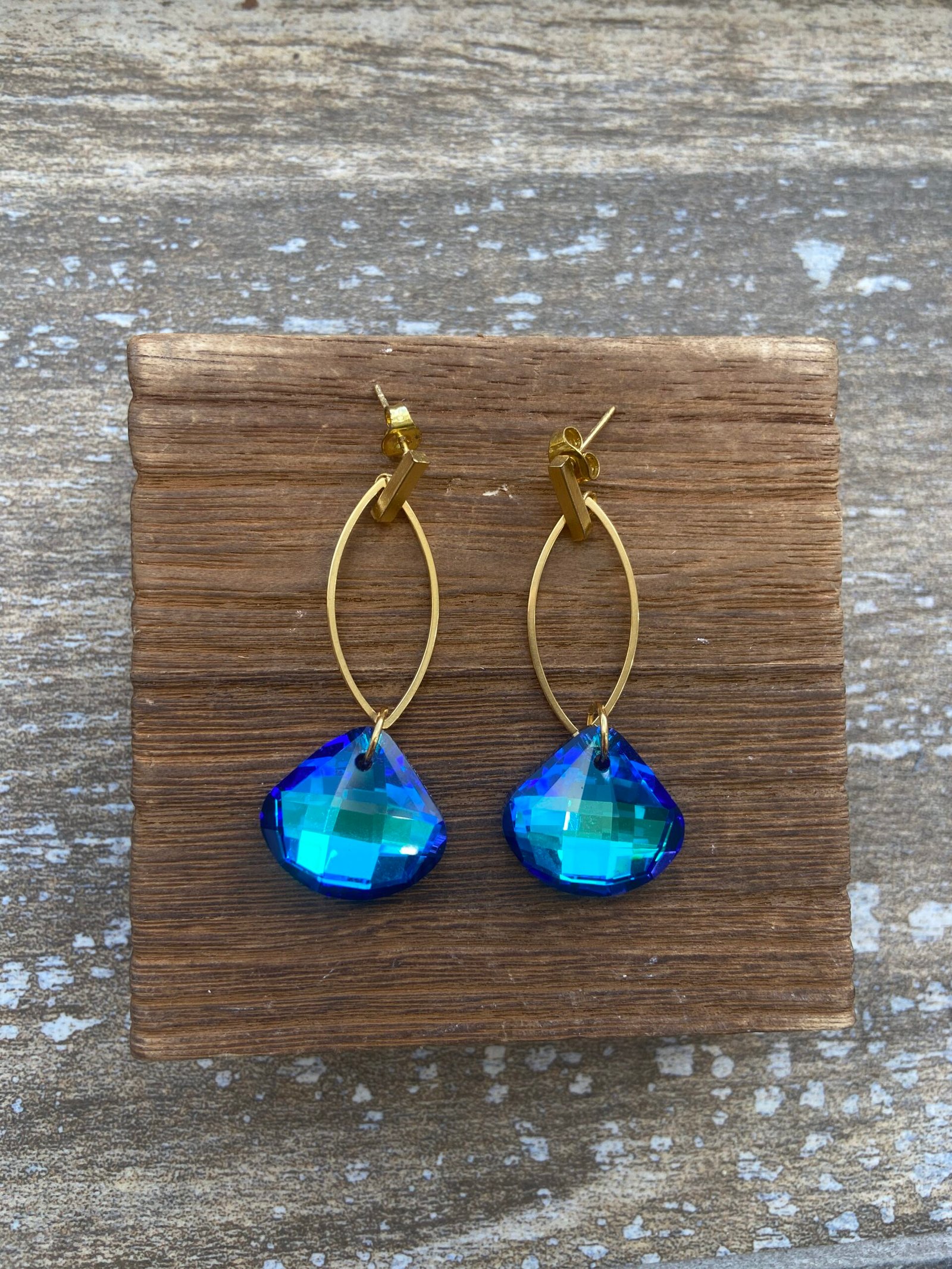 Large Crystal earring (dark and baby blue)